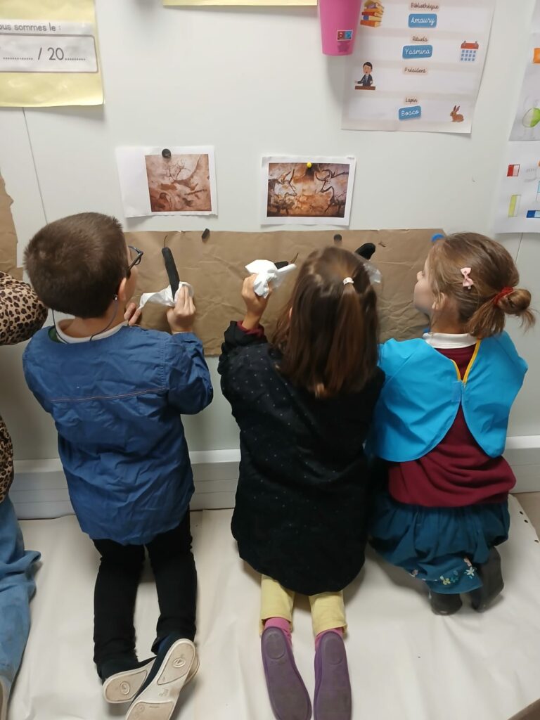 Cette semaine, la classe de CE1 a troqué ses stylos et ses cahiers pour un voyage fascinant dans le temps. Sous la direction de maîtresse Ariane, nos jeunes moussaillons se sont transformés en véritables artistes de la Préhistoire pour un atelier dédié à la peinture rupestre, à la manière des célèbres grottes de Lascaux.