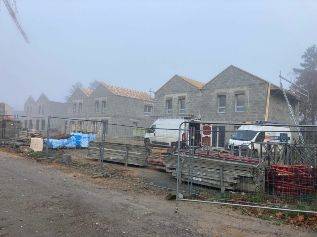 C’est une étape symbolique et technique cruciale qui vient d’être achevée : la maçonnerie est désormais terminée pour l’intégralité des 15 maisons.